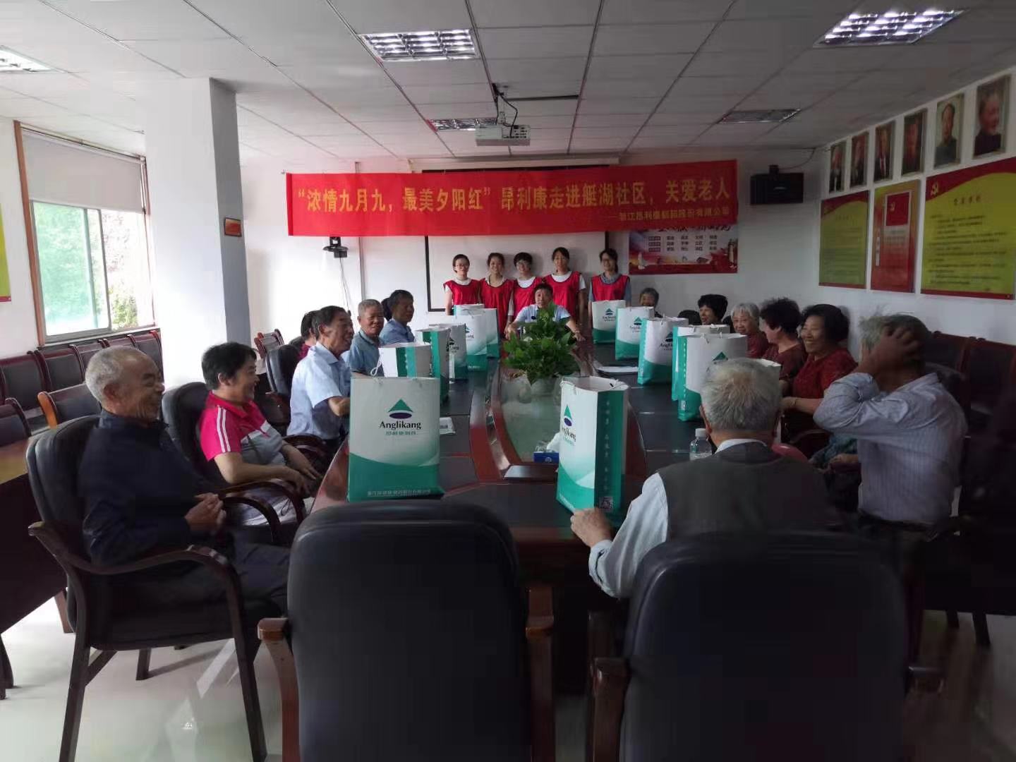 吳繼耀同志代表浙江昂利康制藥股份有限公司出席本次活動(dòng),現(xiàn)場(chǎng)書寫“老吾老以及人之老”字樣的書法作品,贈(zèng)于艇湖社區(qū),體現(xiàn)浙江昂利康制藥股份有限公司對(duì)社會(huì)老人的關(guān)愛之情。最后,艇湖社區(qū)黨支部書記李維正同志對(duì)本次參加活動(dòng)的老人做了介紹,并提出“浙江昂利康制藥股份有限公司開展的本次活動(dòng),體現(xiàn)了一個(gè)企業(yè)對(duì)老人的關(guān)愛,同時(shí)我們老年同志也要支持他們企業(yè)的發(fā)展建設(shè),讓他們安心的生產(chǎn)和經(jīng)營(yíng),創(chuàng)造更多的就業(yè)崗位和財(cái)富,來回報(bào)社會(huì)”。本次參加活動(dòng)的老人有:原村退休老干部、部隊(duì)退役老干部、艇湖社區(qū)最年長(zhǎng)的老人、普通老人。浙江昂利康制藥股份有限公司為本次參加活動(dòng)的老人代表們分發(fā)節(jié)日的紀(jì)念禮品。因崔老書記年事已高,未能參加本次活動(dòng),浙江昂利康制藥股份有限公司志愿者小分隊(duì)在社區(qū)工作人員的帶領(lǐng)下,帶著紀(jì)念品登門拜訪了崔老書記,向崔老書記送去了浙江昂利康制藥股份有限公司的關(guān)心和慰問。老人們一張張的笑臉就是對(duì)本次活動(dòng)最好的肯定。